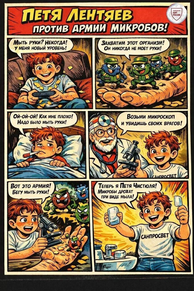 Петя Лентяев против армии микробов. Чистота – залог здоровья с Петей Лентяевым.