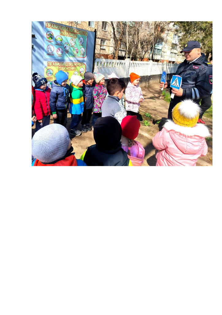 Больше всего восторга вызвало у малышей знакомство с инспектором дорожно-патрульной службы Арабаджиевым Редваном, который рассказал о своей работе по обеспечению безопасности на дорогах, патрульных автомобилях и продемонстрировал подаваемые жесты регулировщика жезлом.